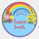 Etiquetas adoráveis e personalizáveis têm um arco-íris brilhante, bonito blocos de flores e um fundo azul-céu. O texto diz do Jardim de... e você completa o resto!