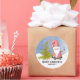 Uma ilustração brilhante de Papais noeis na neve, desejando-lhe um Feliz Natal.