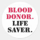 Adesivo Redondo Doador de Sangue. Economizador de vida.