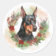 Adesivo Redondo Doberman Christmas Wreath Festivo Pup