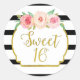 Adesivo Redondo Doce 16 Black Stripes Douradas Rosa Rosa Floral