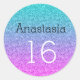 Um adesivo giro de 16 redondos brilhante, colorido, cor de rosa/ azul/ turquesa/ aqua/ lilac/ roxo brilha sobre fundo ombre e escrevendo preto e branco. Você pode personalizá-lo com seu nome e mudar o número para a idade do aniversário. Você pode até alterar a cor do texto e o estilo da fonte usando a opção personalizar.