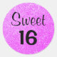 Um adesivo giro 16 com brilho púrpura e brilho e escrevendo negro arrojado.