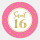 Adesivo Redondo Doce 16 Pontos Dourados Brancos Rosa de Aniversári