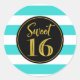 Adesivo Redondo Doce 16 Turquesa de Aniversário Dourada Stripes Br