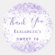 Adesivo Redondo Doce 16 violeta branca, nome brilhante obrigado