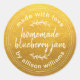 Adesivo Redondo Doce Caseiro Rústico de Mirtilo Enlatamento Ouro