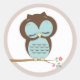 Adesivo Redondo Doce Coruja Sonolenta em um galho