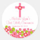 Adesivo Redondo Doce Cruz Rosa Floral Primeira Comunhão Sagrada