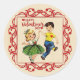 Adoráveis vintage dançarinos namorados em um adorável quadro de ornamentado vermelho.