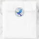 Pomba azul de paz com flocos de neve segurando um galho de oliveira. A silhueta de 2 pombas brancas no fundo. Paz.