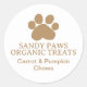 O cão trata a etiqueta do produto Clássico Round Sticker de presentes caseiros para pequenas empresas. Fácil de personalizar - adicione a sua imagem de logotipo ou use a impressão de pata, se quiser, personalize o texto com o seu nome comercial e nome do produto (ou qualquer texto que você quiser). Exemplo de texto "SANDY PAWS ORIC TREATS" Carrot & Pumpkin Chews. Todas as fontes, texto e cores são personalizáveis. Convidamo-lo a visitar a nossa loja Zazzle, Beachy Design Co, para produtos correspondentes e muito mais. Entre em contato conosco se precisar de assistência.