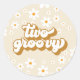 dois adesivos de segundo aniversário de Margarida Retro Groovy com margarida.