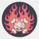 Crânio de desenho animado e bósforos com arco cor-de-rosa e grandes chamas de corridas. T-shirts, suores, cartas e presentes.