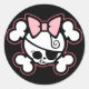 O crânio pirata e o emblema da bandeira dos ossos cruzados, de uma menina bonita, com um arco rosa grande e um rebordo da testa. T-shirts, capuzes, bolota de presente.