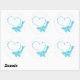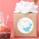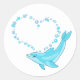 Tema da vida marinha/oceano, golfinho azul giro com bolhas criando forma cardíaca.