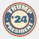 Donald Trump para presidente em 2024 adesivos com design vermelho redondo, branco e azul. Bilhete do Partido Republicano.