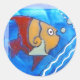 A mão pintou os peixes DooDles num fundo azul oceânico. Os detalhes de DooDles são pintados em realces de vermelho-dourado e verde-opalino.