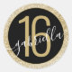 Dourada Glitter e círculo negro redondo 16 anos, selo personalizado de nome para envelopes e favores, perfeito para uma elegante festa de aniversário adolescente moderna, doce dezesseis e 16 anos. Trabalho de arte é uma imagem impressa de brilho - não é usada brilho real. Visite o compro Paper Grape Zazzle para coordenar artigos de partes, artigos de papelaria e convites.