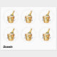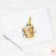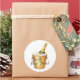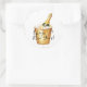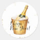 na moda e diversão, esses adesivos são perfeitos para a festa de Ano Novo. A design apresenta um confete de ouro, uma garrafa de champanhe em um balde de ouro, e o texto "Saúde ao Ano Novo!"