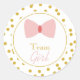 Dourado gênero de confetti revela adesivo. O design apresenta um padrão de confete e um círculo branco no meio com um arco rosa e o texto "Team Girl".