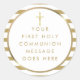 Ouro quico e listras brancas Primeiro adesivo da Comunidade Santa com uma cruz de ouro com uma elegante borda de folha de ouro que enquadra sua mensagem especial de evento de celebração definida na tipografia moderna. Projetado por Thisnotme©