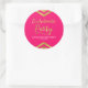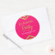 Este elegante adesivo redondo apresenta um giz geométrico e a palavra "Festa de solteira" em dourado falso contra fundo rosa vibrante. Confira os convites e itens correspondentes aqui http://www.zazzle.com/collections/modern_faux_gold_chevron_celebration_collection-119531050277382712?rf=238364477188679314 Personalize-o com seus detalhes substituindo o texto do marcador de posição. Para obter mais opções, clique no botão "Personalizar". *Observe que a Marca d'água do Zazzle que aparece na visualização de zoom NÃO aparecerá no produto impresso final. © Rosewood e Citrus