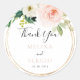 Completar seu clássico evento de casamento com este obrigado de casamento de flores de queda geométricas douradas, seu clássico adesivo redondo. O design apresenta flores brancas e cor-de-água cor-de-rosa com folhas verdes, enfeitando uma moldura geométrica dourada.