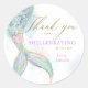 Adesivo Redondo Dourada Glitter Sereia Obrigado Aniversário