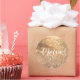 Adesivo Redondo Dourada Literação Cursiva Branca Personalizada com
