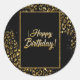 Vinheta-redonda Dourada e cola-cola-cola-colar-cola-colar. Design com brilho de ouro falso e joias. Perfeito para uma celebração elegante e glamourosa. A fonte de Feliz Aniversário foi embutida com diamantes.