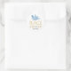 Dourada Paz, Amor, Joy e água azul engravidam o adesivo de Natal. Esta trendy design festiva exibe uma pomba azul padronizada e o texto "Paz, Amor e Alegria" em ouro.