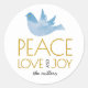 Adesivo Redondo Dourada paz, amor, alegria, pomba azul Natal