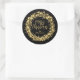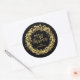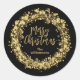 Estrelas douradas, círculos e pontos rodeiam as palavras "Feliz Natal" e os seus nomes em adesivos redondos pretos, perfeitos para o seu presente de Natal e muito mais. CORRESPONDENTE a itens na nossa coleção.