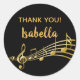 Adesivo Redondo Douradas notas de música sobre o obrigado preto el