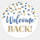 Bem-vindos aos autocolantes com padrão de ouro e confete azul.