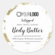 Adicione seu logotipo! Personalize este belo adesivo holográfico e iridescente do arco-íris para a sua marca. Edite todo o texto e detalhes para afixar etiquetas para sua manteiga corporal, loção ou outros itens de cuidado corporal, ou até use-as em velas ou outros produtos! As possibilidades são infinitas!
