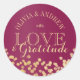 O elegante adesivo de casamento com dourado e baga de vinho com texto de ouro. "Com amor e gratidão", obrigado-te o adesivo do favor de casamento.