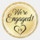 Dourada Glitter cria uma bela borda para este adesivo de noivado. Dourado metal e branco formando os círculos internos. Estamos envolvidos com um ponto de exclamação que é escrito em uma fonte grande e negrito de script. Um coração negro aberto contém as iniciais do monograma do casal engatado. Adiciona um pouco de mistério aos envelopes de noivado ou de festa de noivado. As pessoas vão tentar adivinhar quais são as iniciais enquanto abrem o envelope. Fácil de personalizar.