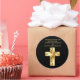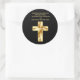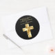 Adesivo Redondo Dourado Christian Crucifix Cross com palavras engr