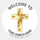Adesivo Redondo Dourado Coração Crucifix Igreja Bem-vindo