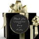 Este elegante obrigado preto que você cola com guião branco é mínimo, mas clássico. Uma borda dourada e um suporte destacam sua mensagem
