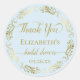 Estes belos adesivos são perfeitos para agradecer aos convidados num chá de panela. O design apresenta o texto do script rico em ouro sobre um fundo azul pálido, colorido, com uma borda do local da folha de alumínio falsa do ouro. O texto diz Obrigado, com espaço para o nome da noiva ser e a data.