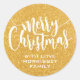 Adesivo Redondo Dourado Glitter Impressão Feliz Natal Personalizad