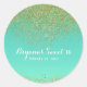 Adesivo Redondo Dourado Glitter & Teal Aqua Glam Festa de aniversá