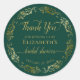 Estes adesivos elegantes são perfeitos para agradecer aos convidados num chá de panela. O design apresenta o texto do script ouro do rico em um fundo verde esmeraldo com uma borda do local de folhas falhadas do ouro. O texto é totalmente personalizável e diz "Obrigado por se juntar a nós em [nome da noiva ser o chá de panela]" com espaço para a data no final. Excelente como etiquetas de favor ou selos de envelope!
