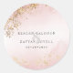 Adesivo Redondo Dourado Luxo Moderno Palmas Blush Casamento Rosa