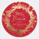 Adesivo Redondo Dourado Natal Vermelho e Eucalyptus Wreath