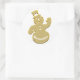 Um boneco de neve dourado sorrindo e acenando e vestido para o monte em seu chapéu. Um adesivo bonito para a estação de inverno. Personalize se quiser.