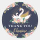 Dourado Swan Princesa Rosa, Marinho Floral Azul Agradeço-Lhe O Adesivo Arredondado Clássico